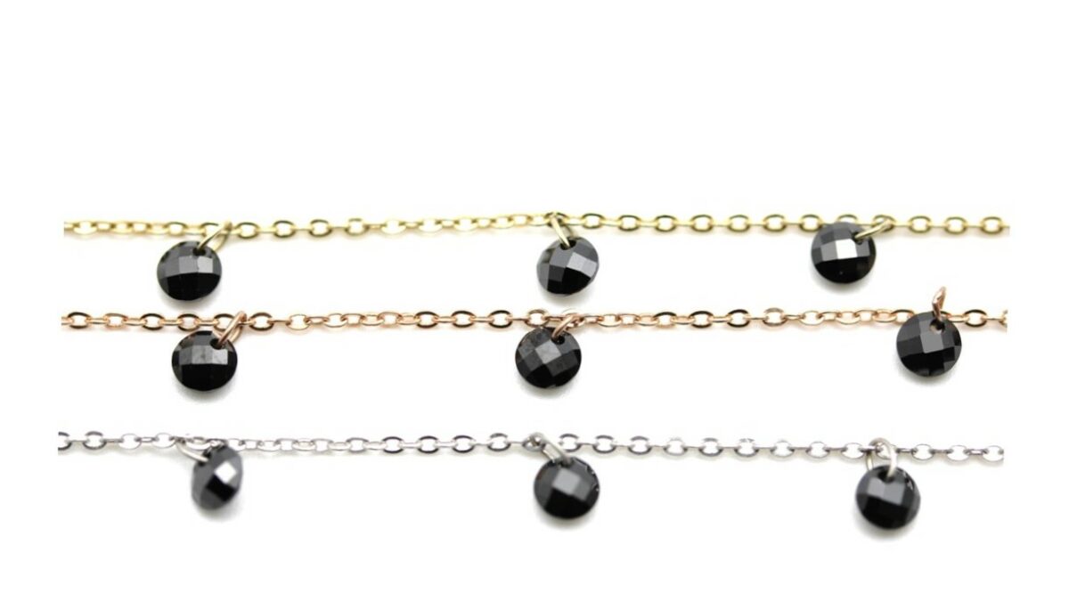 Chain with black zircons, round cut