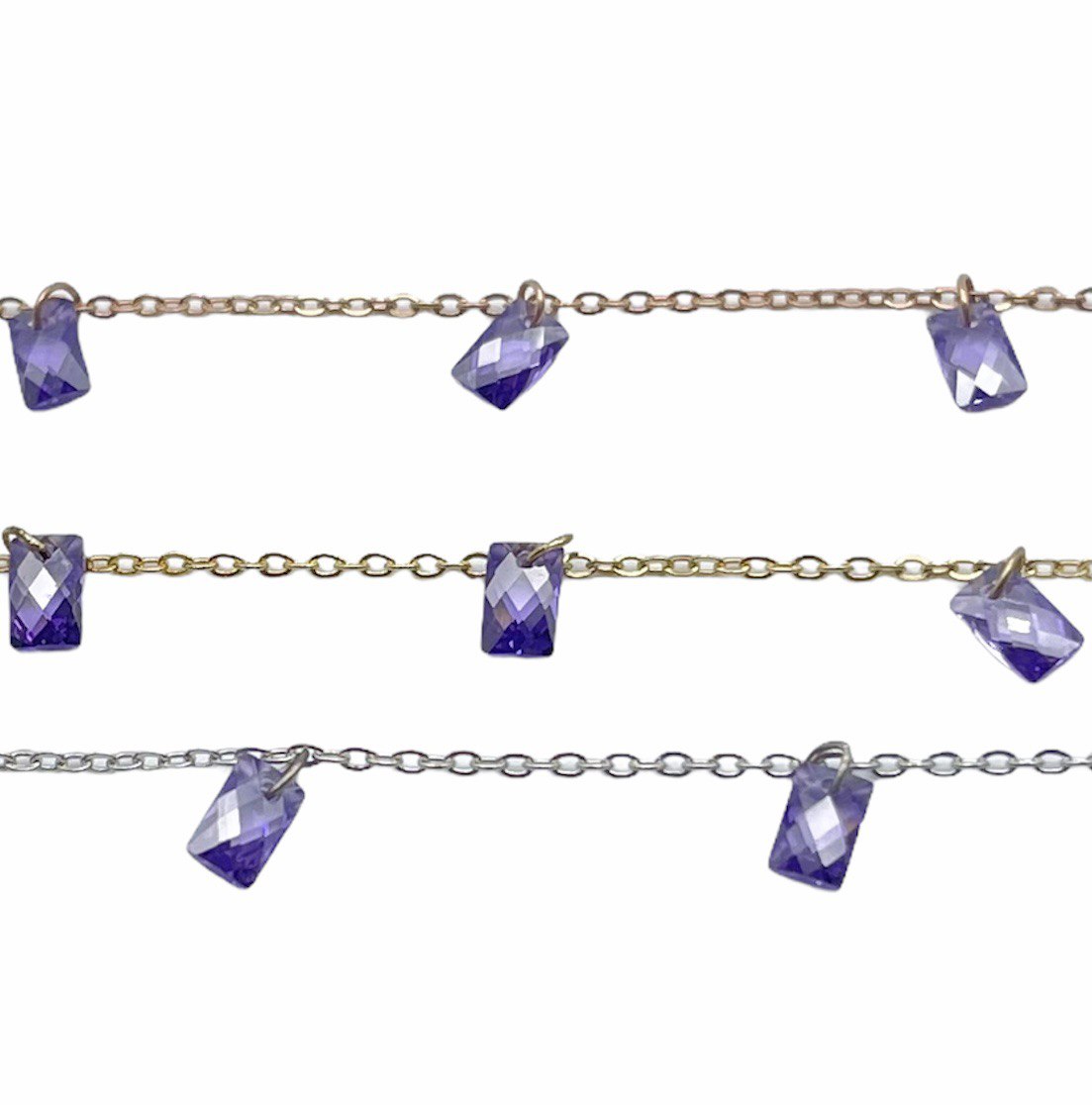 Chain with purple zircon, baguette cut