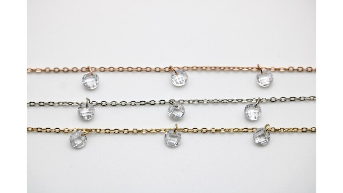 Chain with white zircons, round cut