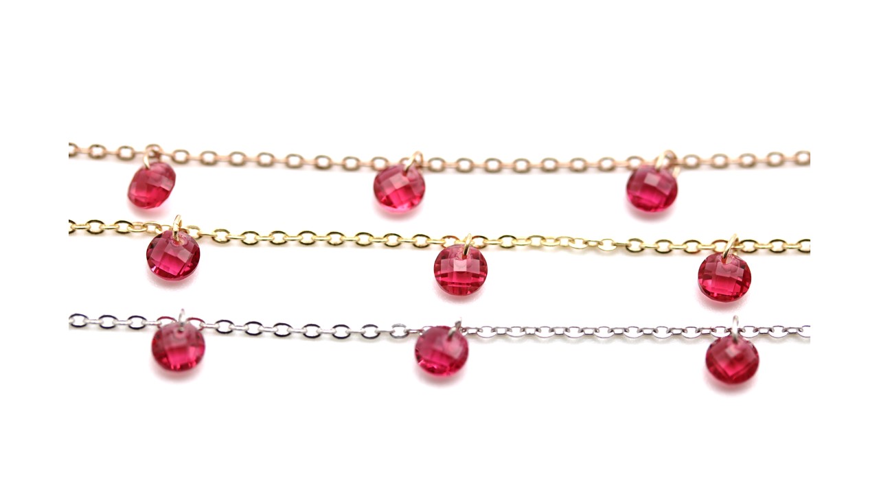 Chain with red zircons, round cut