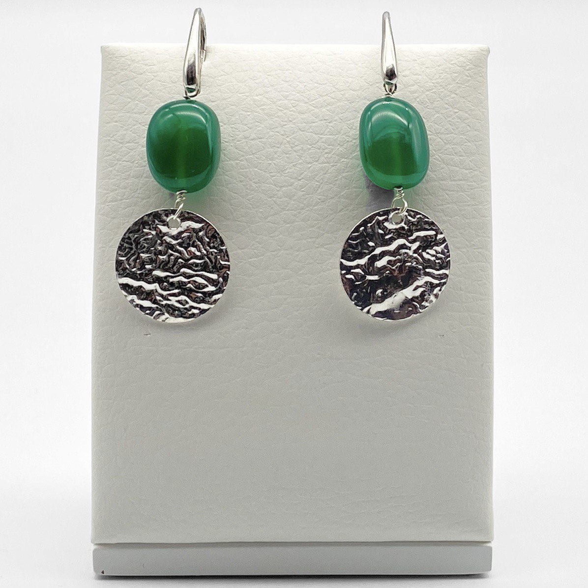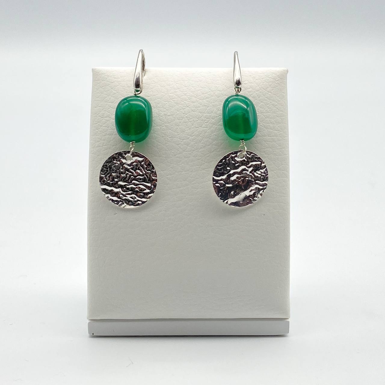 Long earrings with smooth stones and silver medal