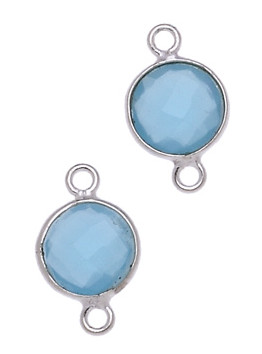MONETA C/BORDO ARG. 925 C/2 ANELLI 9 MM. AGATA AZZURRA