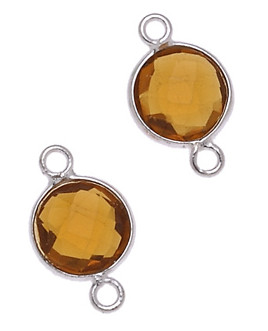 MONETA C/BORDO ARG. 925 C/2 ANELLI 9 MM. QUARZO MADERA