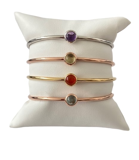 Natural stones set bangle, cabochon cut