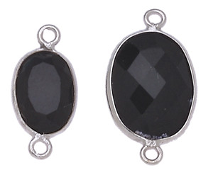 OVALE IRREGOLARE C/BORDO ARG. 925 C/2 ANELLI CIRCA 13*17 MM. AGATA NERA