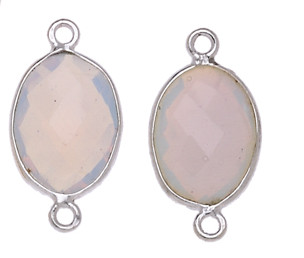 OVALE IRREGOLARE C/BORDO ARG. 925 C/2 ANELLI CIRCA 13*17 MM. QUARZO ROSA