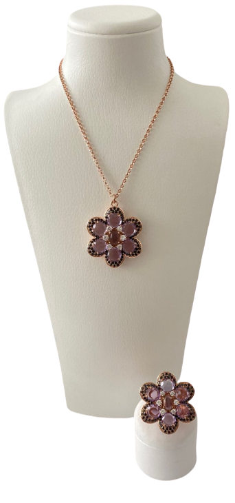 Parure con anello e collana con pietre naturali e zirconi